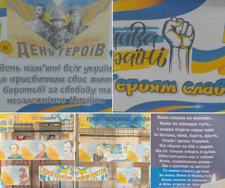 ШБІЦ. За рідну домівку поклали життя рідні сини, Герої що завжди в наших серцях. За землю, за матір зробили, що мали зробити. Герої не гинуть, герої живуть у серцях. 23 травня – День Героїв України. В Пирятинському ліцеї №4 проведено патріотичні уроки, переглянули на класних годинах відеоролики про героїв, які завжди були на захисті Свободи й Незалежності нашої держави. Та презентували інформаційну виставку. Подвиги оборонців будуть збережені й відомі в усім світі.