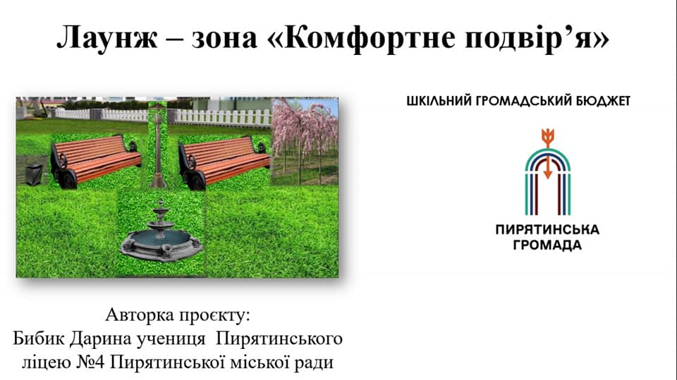 За результатами голосування серед здобувачів освіти наш ліцей пропонує до фінансування проєкт: Лаунж-зона”Комфортне подвір’я”, у рамках Шкільного громадського бюджету. Автором…