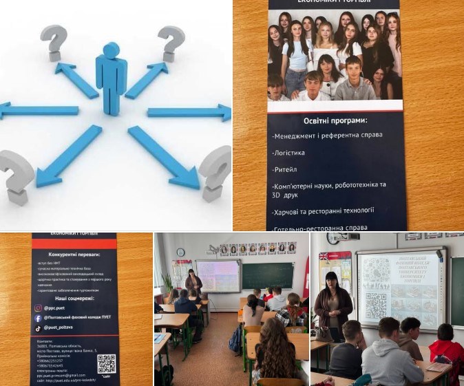 Під час заходу учні ознайомилися з актуальними освітніми програмами, серед яких ІТ-спеціальності, логістика, харчові та ресторанні технології, готельно- ресторанна справа….