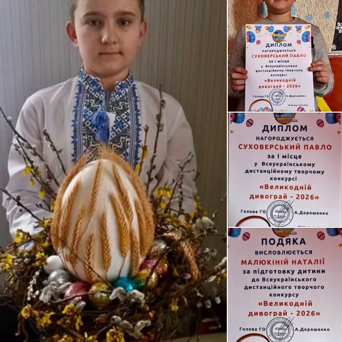 Вітаємо з перемогою у Всеукраїнському дистанційному творчому конкурсі «Великодній дивограй — 2026»! Серед великої кількості обдарованих учасників з усієї України…