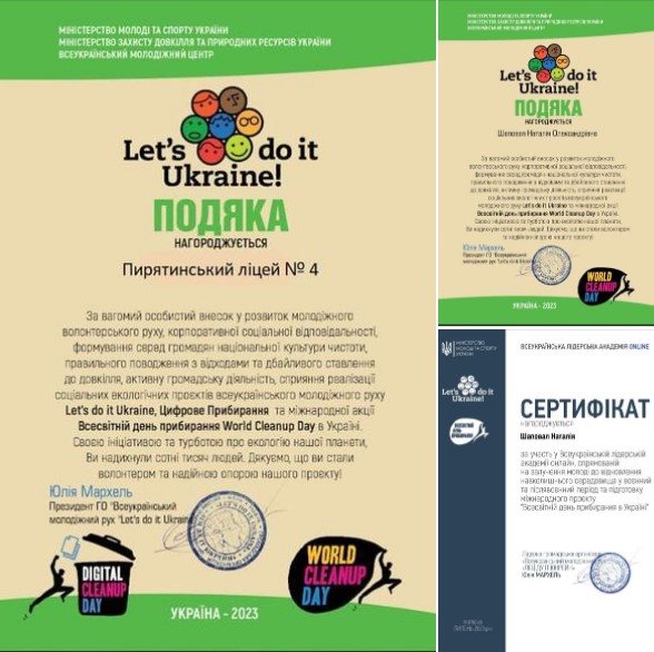 Нагороджується Пирятинський ліцей №4 подякою,за вагомий внесок у розвиток молодіжного волонтерського руху,корпоративної соціальної відповідальності, формування серед громадян національної культури чистоти,правильного…