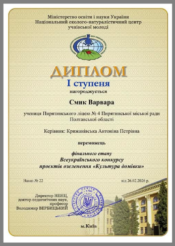 Сьогодні ранок почався з приємного повідомлення! Нарешті ми отримали результати фінального етапу Всеукраїнського конкурсу проєктів озеленення «Культура домівки»!Серед учасників із…